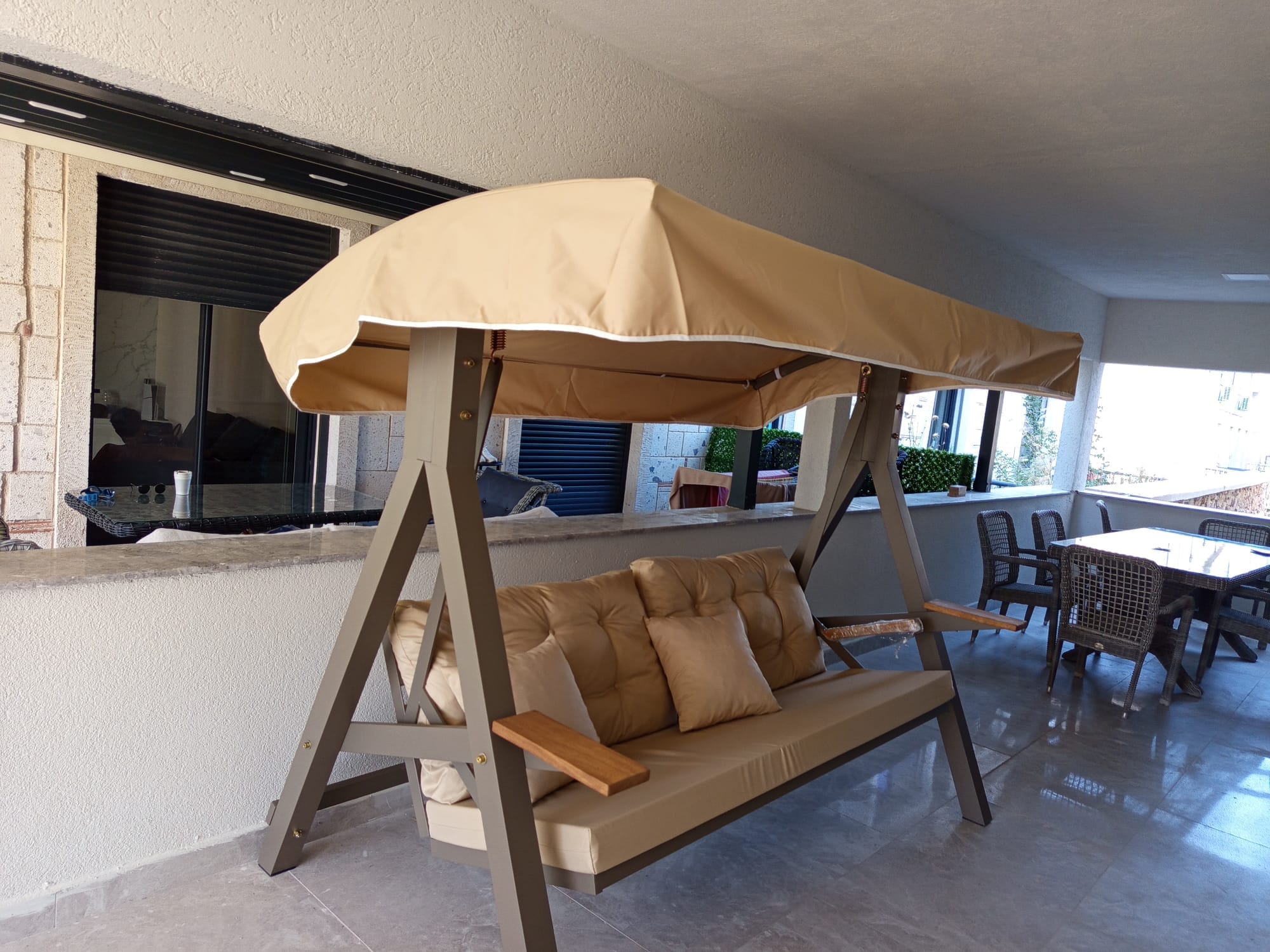 Alüminyum iskeletten yapılmıştır. Ahşap kısımları ireko ağacındandır. Alt minderi 10 cm süngerden imal edilmiştir. Sırt minderleri boncuk silikondur.: